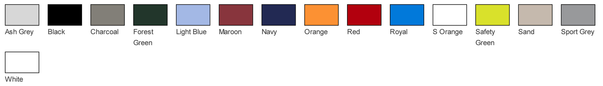 - Safety Green & Safety Orange are 50% cotton, 50% polyester