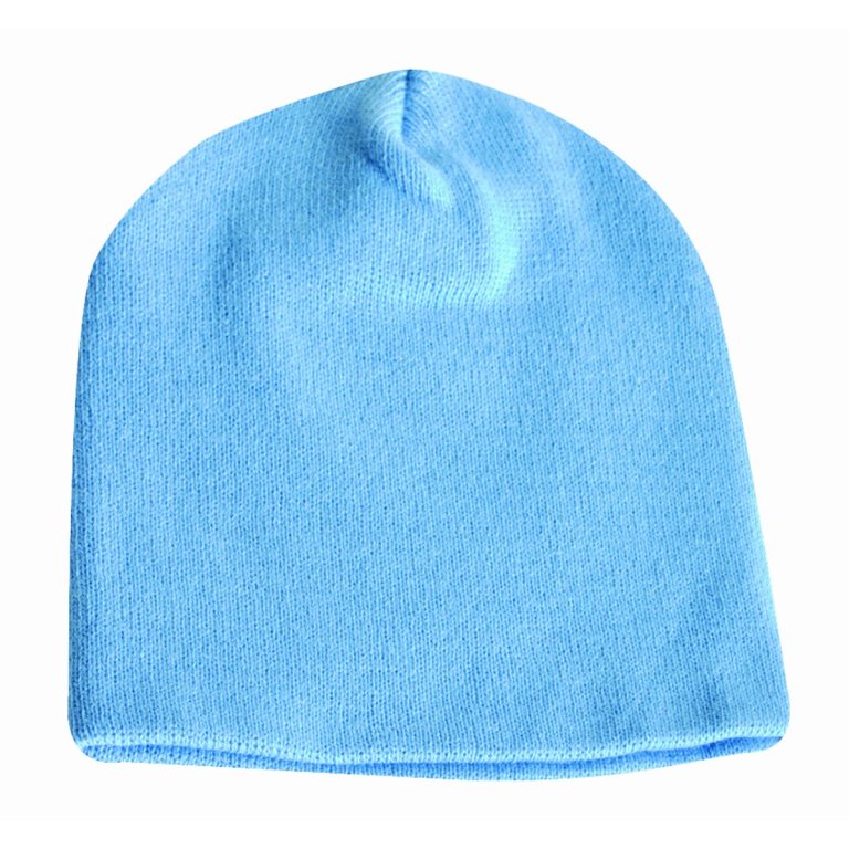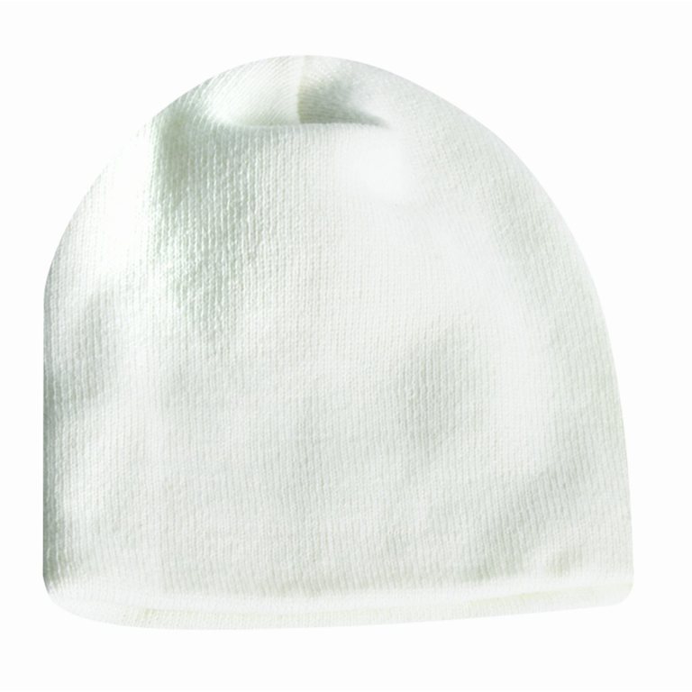 100% acrylic knit beanie, approximately 8.5" long. 8 1/2" L